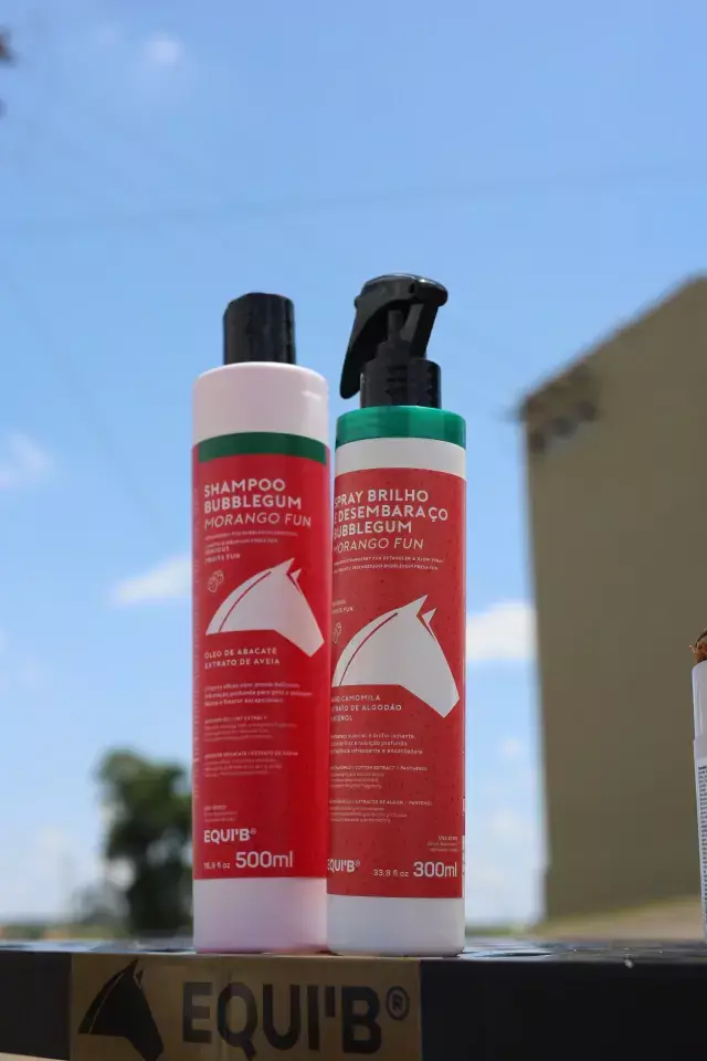 O Shampoo Strawberry Bubblegum EQUI'B oferece uma limpeza suave e eficaz, protegendo a camada dérmica e o manto lipídico da pelagem do cavalo.
